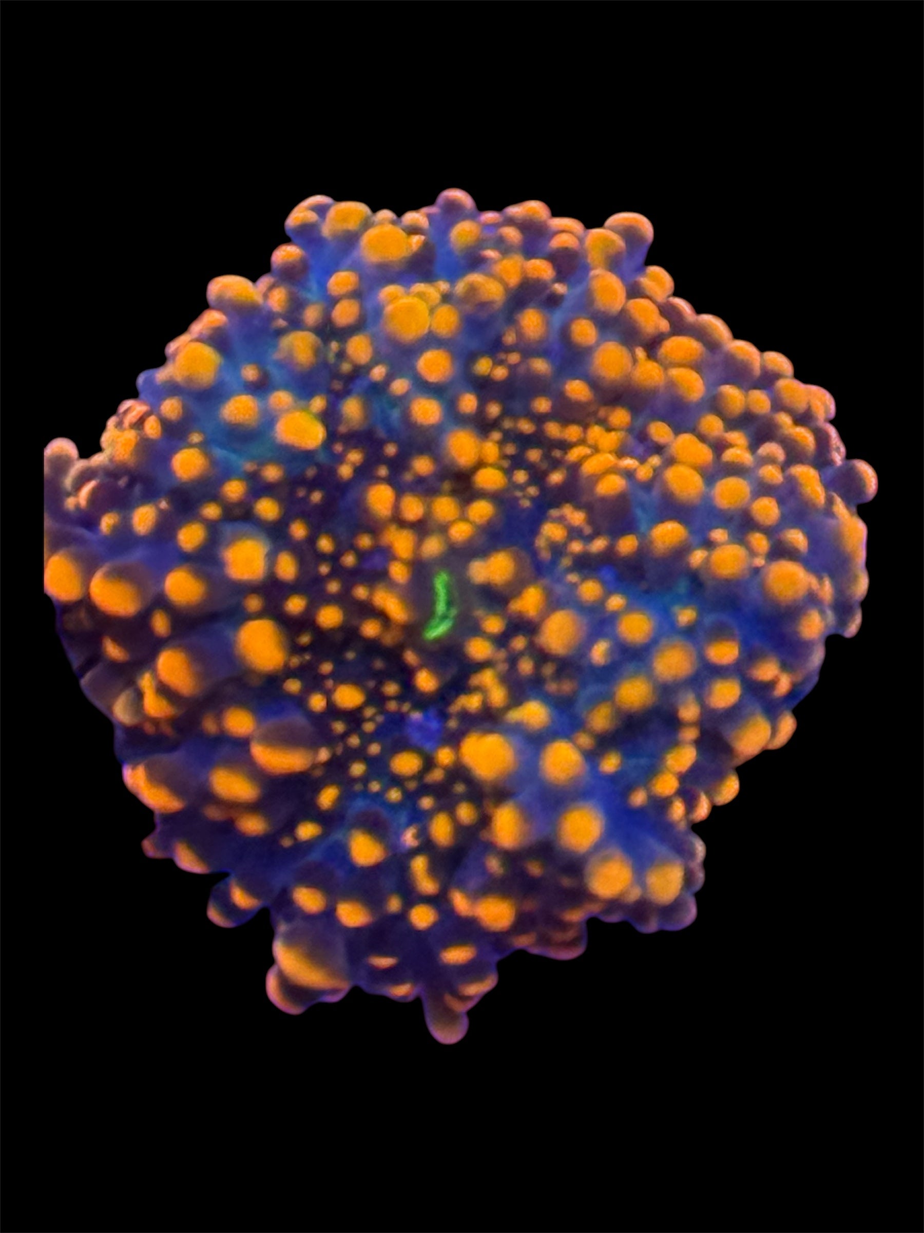 Mushroom corals are the chill, bouncy, nearly-indestructible softies that look like little psychedelic pizzas stuck to your rocks. They come in every color and pattern: bright neon green, electric blue, rainbow “Jawbreaker”, spotted “Bouncing” mushrooms, ultra-rare “Ultra Rainbow Yuma” and the size of a coaster, and of course the classic green hairy Rhodactis.
